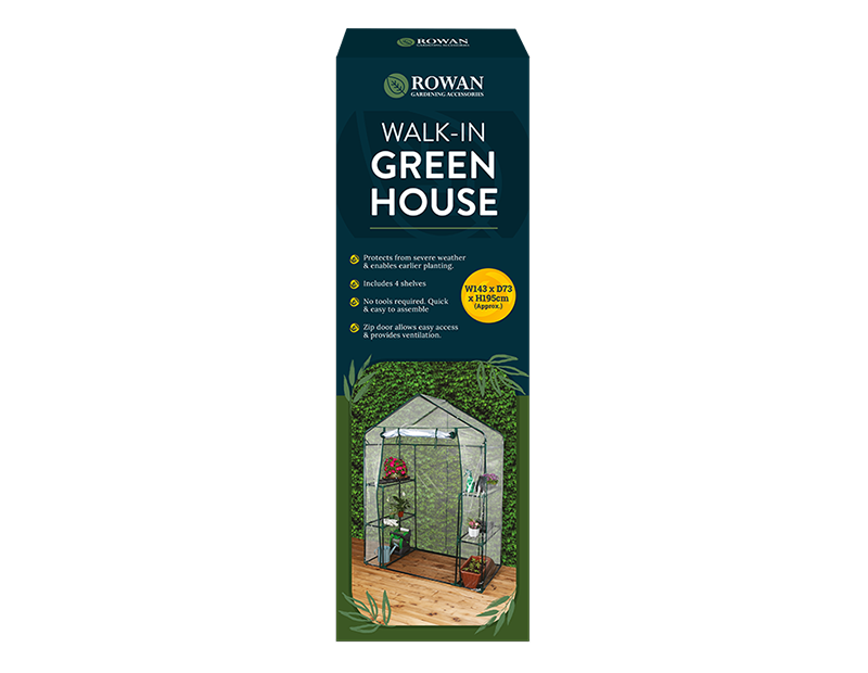 With no tools required, this greenhouse is easy and quick to assemble, and includes four shelves and a transparent covering with zip door, allowing easy access and providing ventillation.