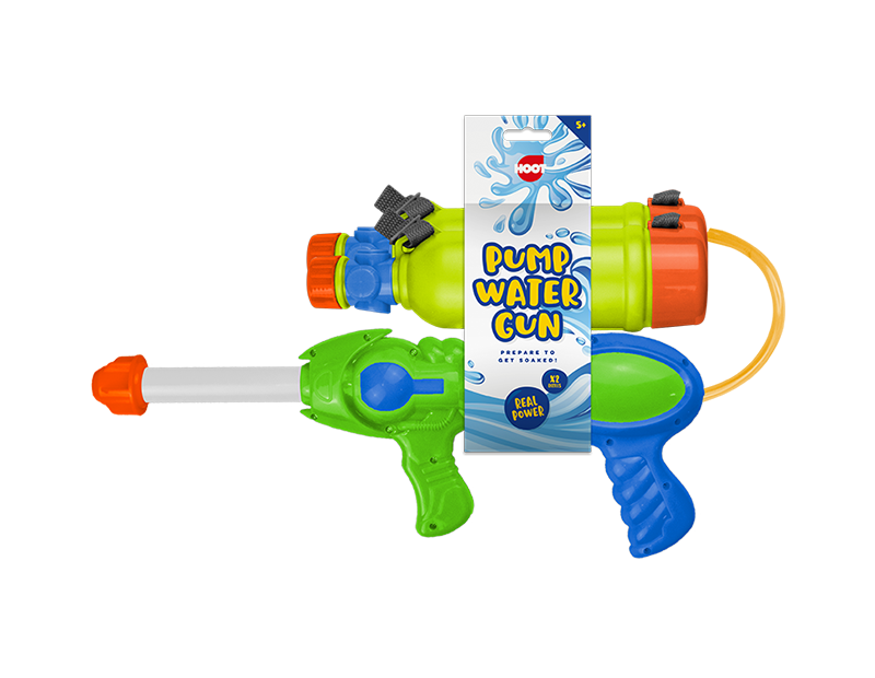 This water pump spray toy is a great activity for kids over the summer months. Each water pump features two refillable water bottle backpacks. The water pump is connected to the clear tube that can be used to refill with water.