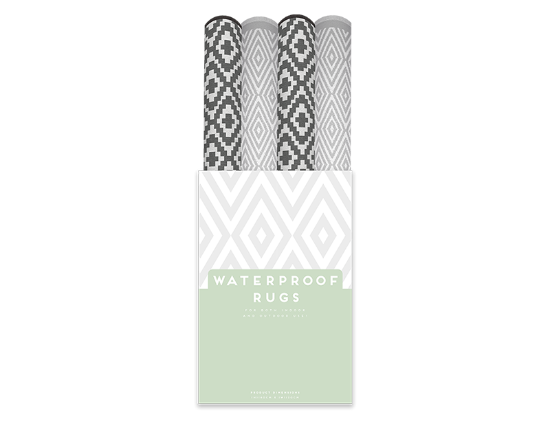 Versatile and on-trend, these weatherproof rugs have the advantage of been suitable for indoor or outdoor use. Each rug is designed in a contemporary and eye-catching pattern and is available in two stylish colorways.