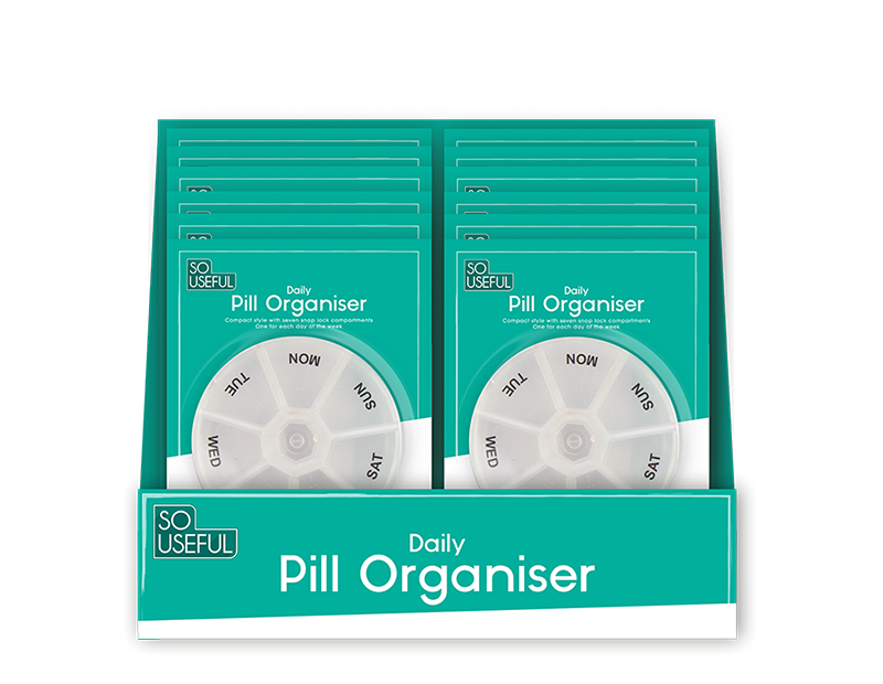 Stay organised with this daily pill organiser, each compartment measures 2.5 in diameter and is suitable for a variety of sizes tablets and vitamins.