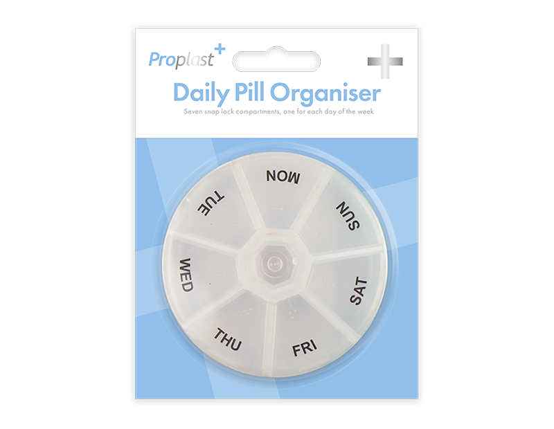 Stay organised with this daily pill organiser. Each compartment measures 2.5 in diameter and is suitable for a variety of tablet and vitamin sizes.