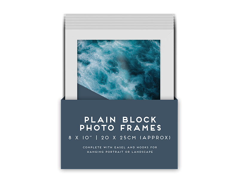 Each frame comes complete with easel and hooks, for hanging portrait or landscape.