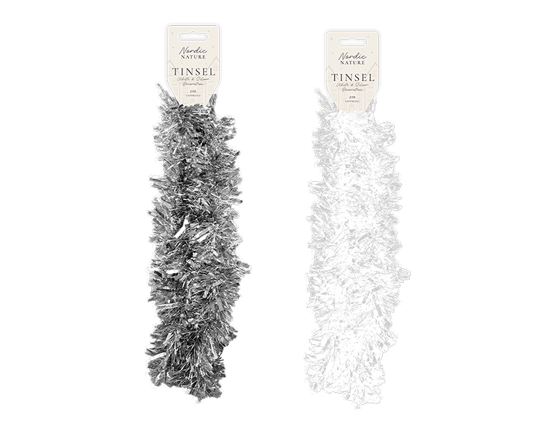 This White & Silver Christmas Tinsel has a length of 2 metres and is constructed around an internal piece of flexible steel wire for added durability.