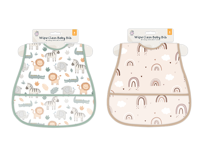 Wipe clean baby bibs - ideal for messy meal times and activities.