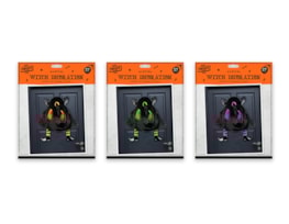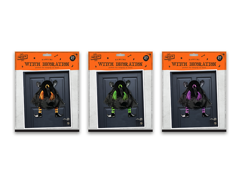Decorate inside doors with this hanging witch door decoration. Each decoration measures L68 x W60cm and has a hanging string on top. Designed to look like the witch has flown a broomstick and into the door!