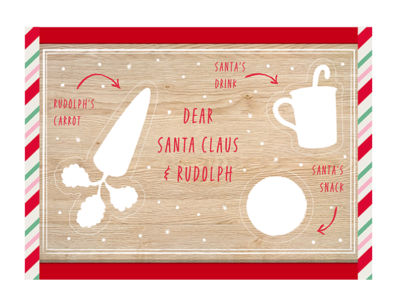 Bring the magic of Christmas to life with this Snacks for Santa board. Measuring 20 x 30cm. The wooden treats board features a place for Santas snack, Santas snack and Rudolph's carrot.