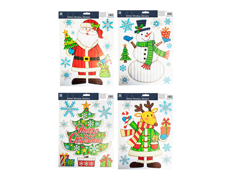 Xmas Figures Glitter Finish Window Stickers