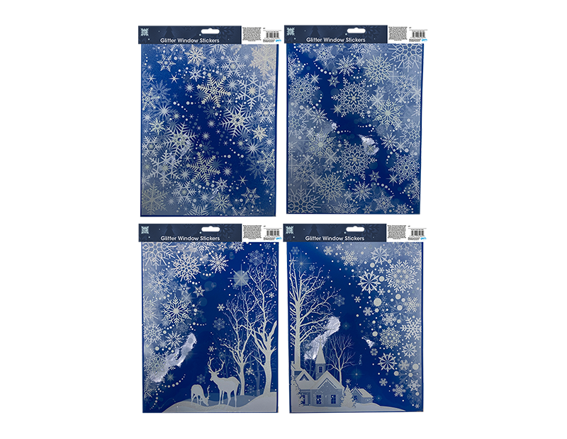 Create a stunning Christmas scene silhouette in your home with these white glitter window stickers.