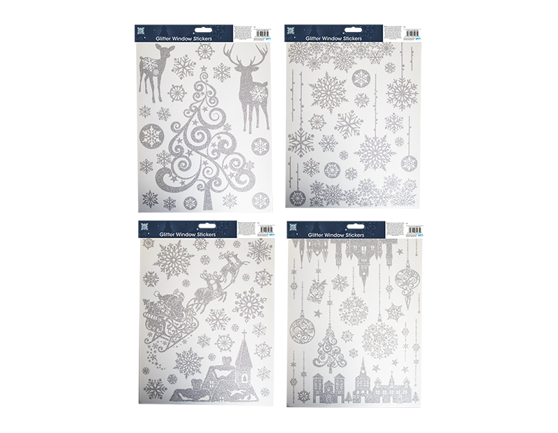 Xmas Silver Glitter Window Stickers