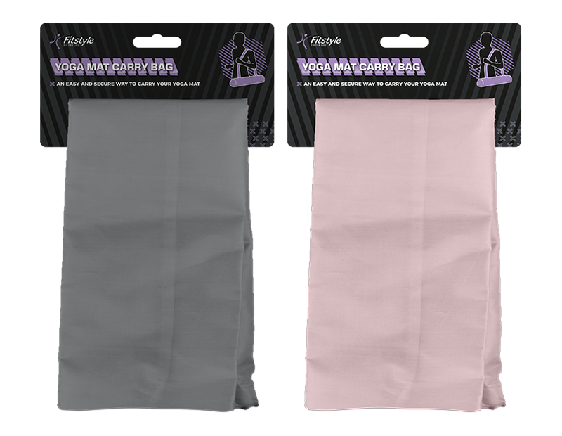Designed for easy carrying of a rolled yoga mat. This yoga mat carry bag made from durable polyester and plastic. Each yoga mat has a carry bag with drawstring close and an adjustable handle.