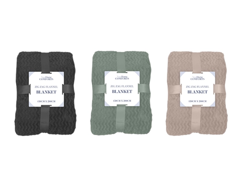 Each blanket is constructed from 100% flannel polyester and features an allover zig zag texture. Each blanket measures 150 x 200cm.