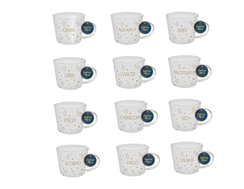 These beautiful glass mugs make ideal gifts for birthdays and other celebrations, for astology lovers everywhere.