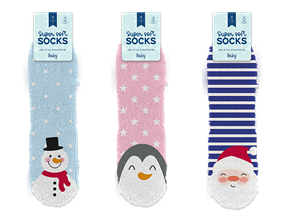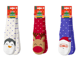 Boys Printed Novelty Cosy Socks with Grippers 2pk