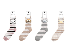 Girls Printed Novelty Cosy Socks with Grippers 2pk